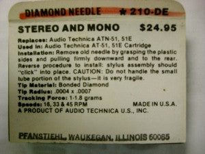 Genuine Audio Technica Diamond Needle Pfanstiehl # 210-DE