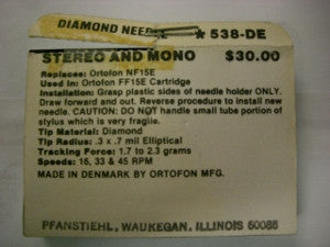 Genuine Ortofon Diamond Needle Pfanstiehl# 538-DE