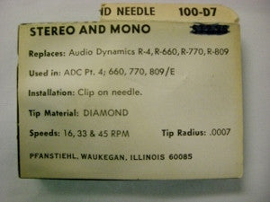 Pfanstiehl Phonograph Needle 100-D7