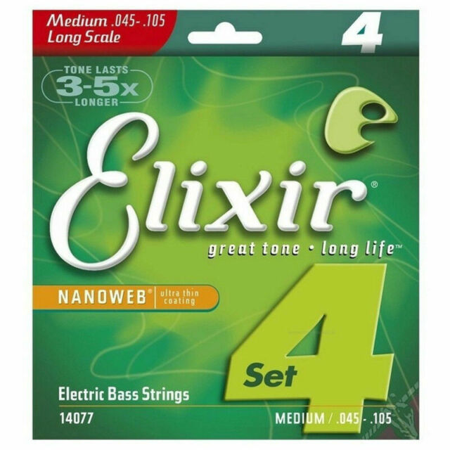 Elixir Nanoweb Coated Long Scale 4-String Bass Strings 14077 Medium 45-105